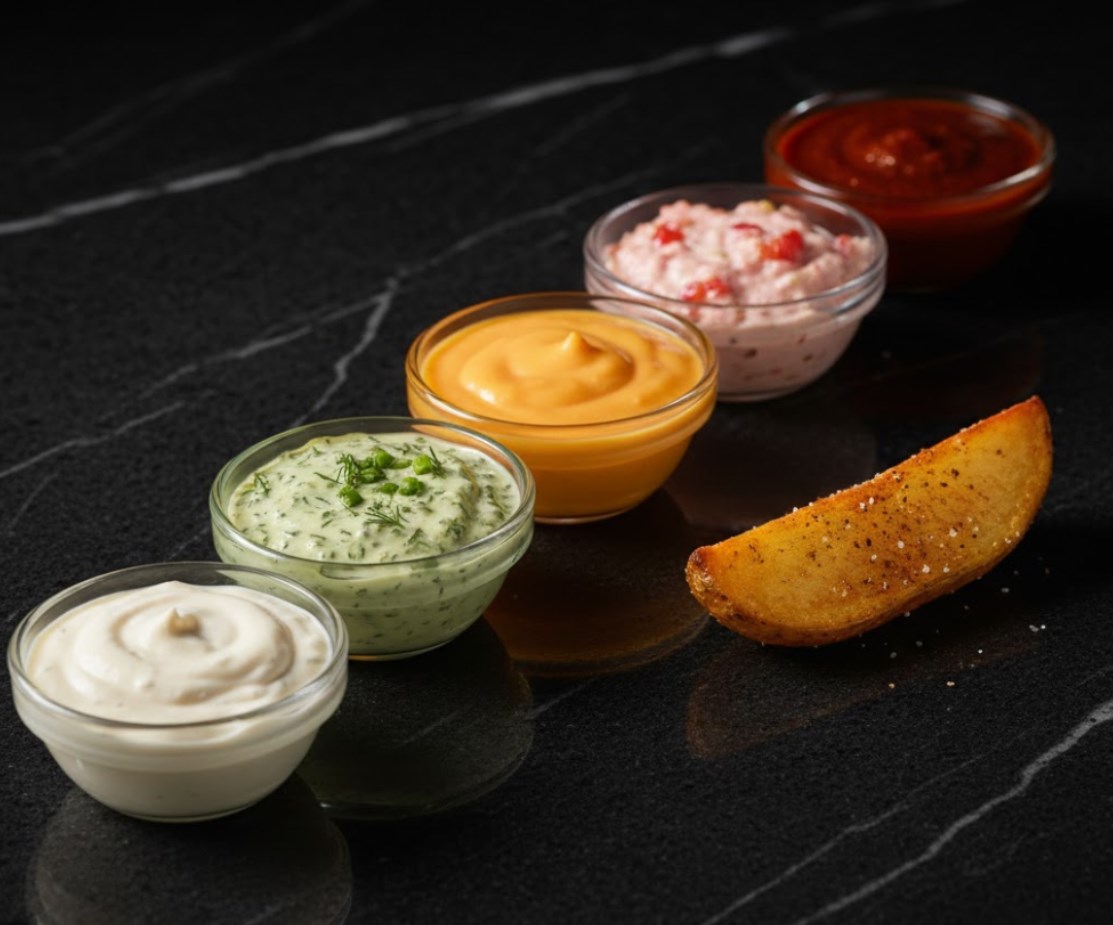 Картофель раскрывает свой вкус по-настоящему ярко в сочетании с правильно подобранным соусом. Айоли, тар-тар, сырные, сметанные и пряные соусы не перебивают, а дополняют его, превращая привычный гарнир в самостоятельное и многогранное блюдо.