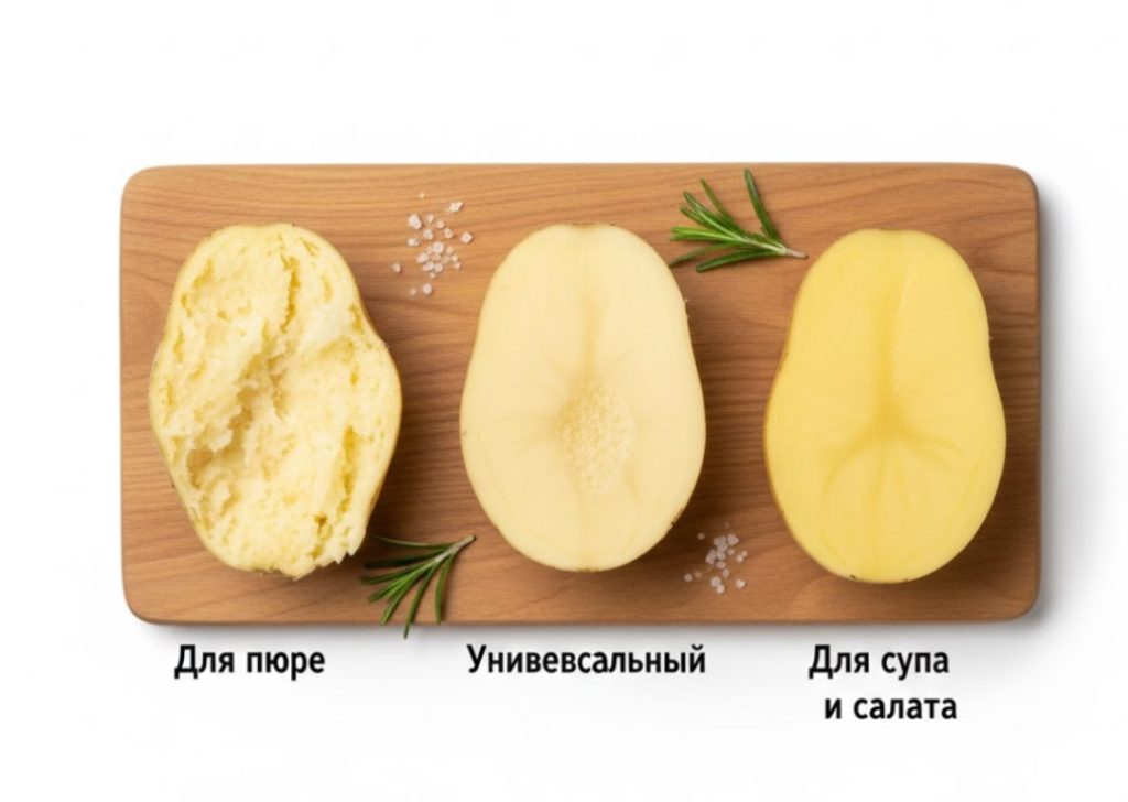 - выбор сорта, соответствующего кулинарной задаче (рассыпчатый для пюре, плотный для салатиков, супа);