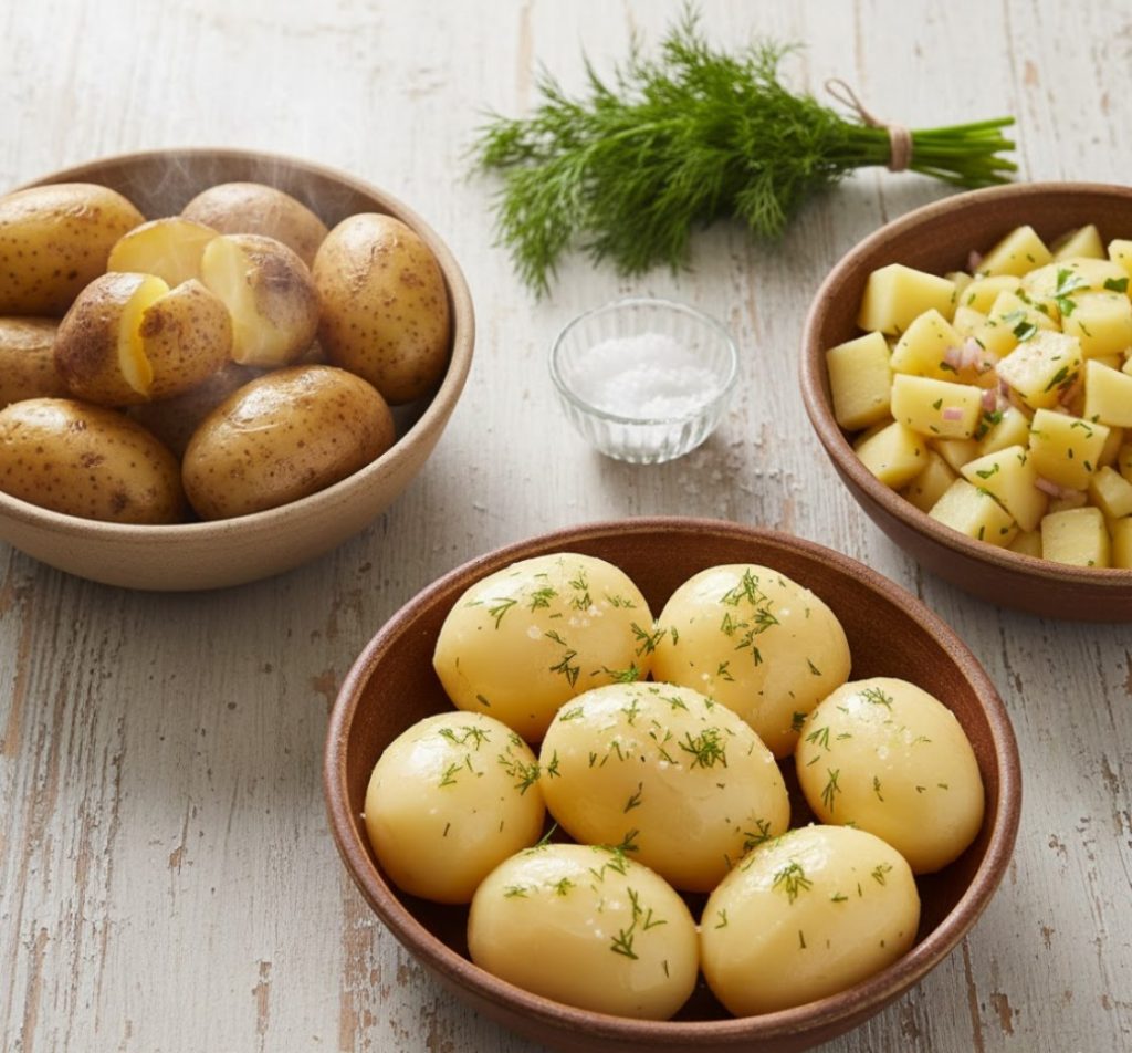 Несколько простых приемов улучшают итог. Для ароматного пюре в готовое блюдо добавьте теплое сливочное масло и немного подогретых сливок. Разминать картофель толкушкой лучше сразу после варки. Для салата клубни после готовности стоит обсушить на салфетке. Варить картошку для пюре лучше до полной мягкости, а для салата — слегка недоваривать. Если картошка разварилась, ее легко превратить в основу для котлет или оладий.