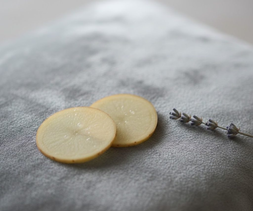 - Снятие отеков и темных кругов под глазами: положите на закрытые веки два охлажденных кружочка сырого картофеля на 10-15 минут. Это поможет уменьшить отечность за счет дренирующего эффекта и немного осветлить кожу.