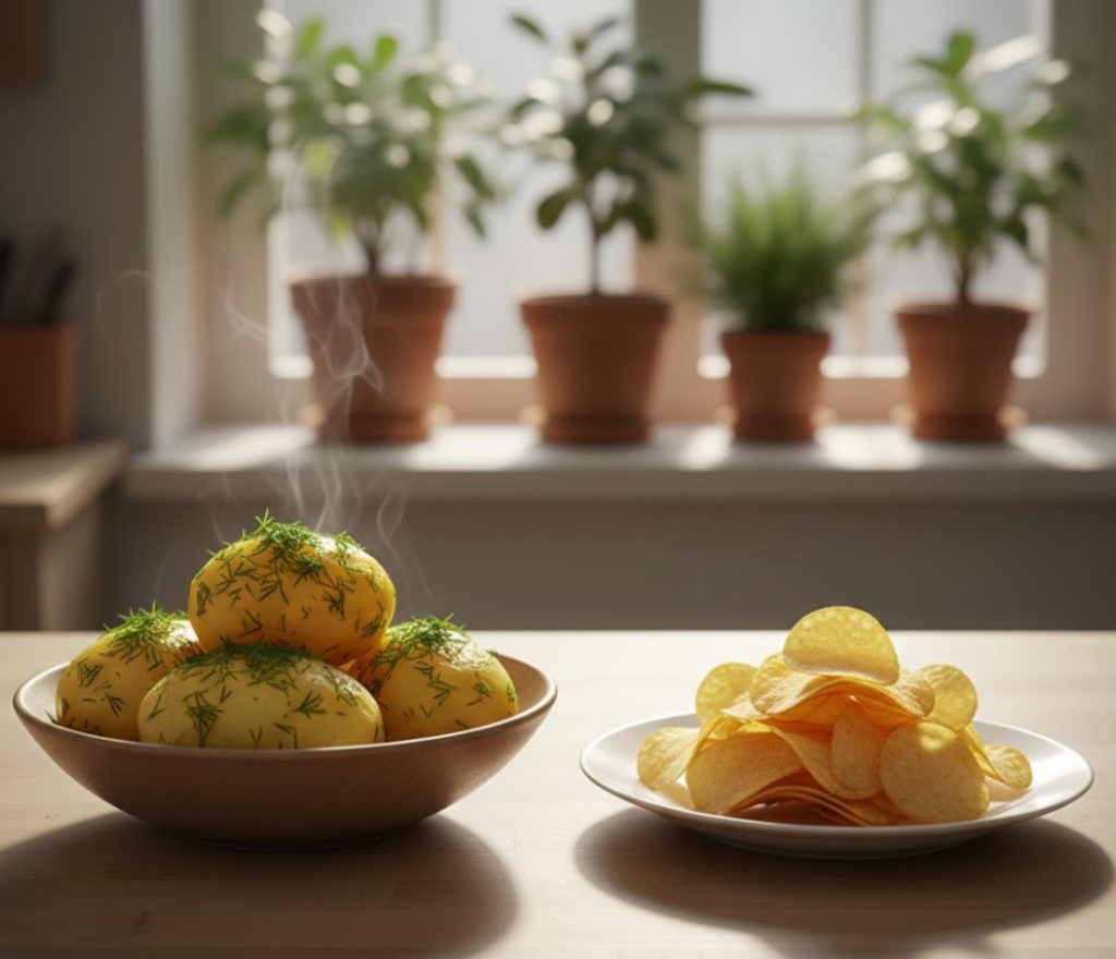 Убеждение, что картофель автоматически приводит к набору веса, — самое распространенное заблуждение. На деле калорийность отварного картофеля составляет всего около 80-85 ккал на 100 грамм, что меньше, чем у многих круп (например, гречки — 130 ккал). Проблема кроется не в самом продукте, а в способах его приготовления и подачи.