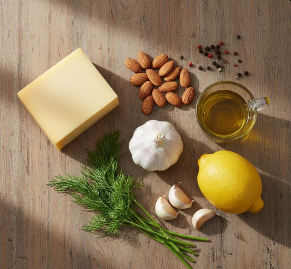 - База: молочный соус бешамель (мука, масло, молоко) или густые сливки, расплавленный сыр;