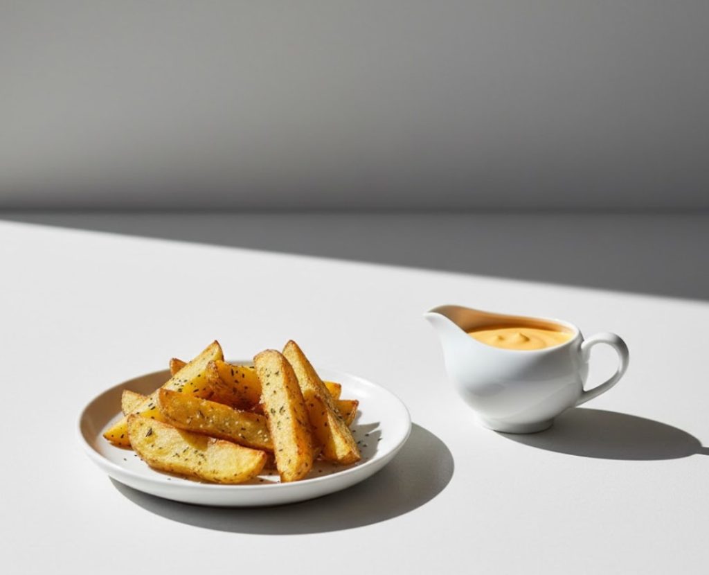 - Почему работает: жирность соуса смягчается кислотой лимона, а чеснок добавляет глубины, которая не конфликтует, а дополняет вкус картофеля.