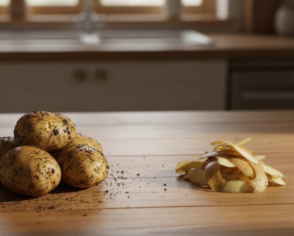 Этот метод находится на грани кухонного абсурда и гениального лайфхака, но он действительно работает, особенно если нужно быстро почистить десяток клубней от сильных загрязнений или остатков тонкой кожуры после бланширования.